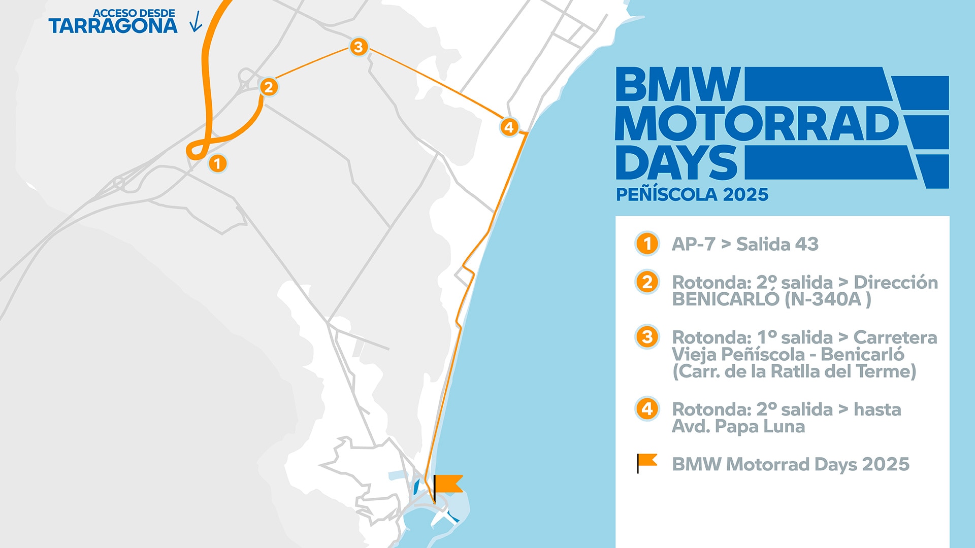 En los BMW Motorrad Days podrás aparcar tu moto de forma gratuita en los puntos señalados en el mapa. Sin embargo, si prefieres que tu mayor tesoro esté vigilado, aprovecha la oferta exclusiva de nuestro colaborador y ¡reserva ya tu parking con vigilancia 24 horas! Disfruta de tu momento en los BMW Motorrad Days 2025 con la tranquilidad que necesitas y además, aprovecha un 50% de descuento en el servicio. ¡No esperes más!