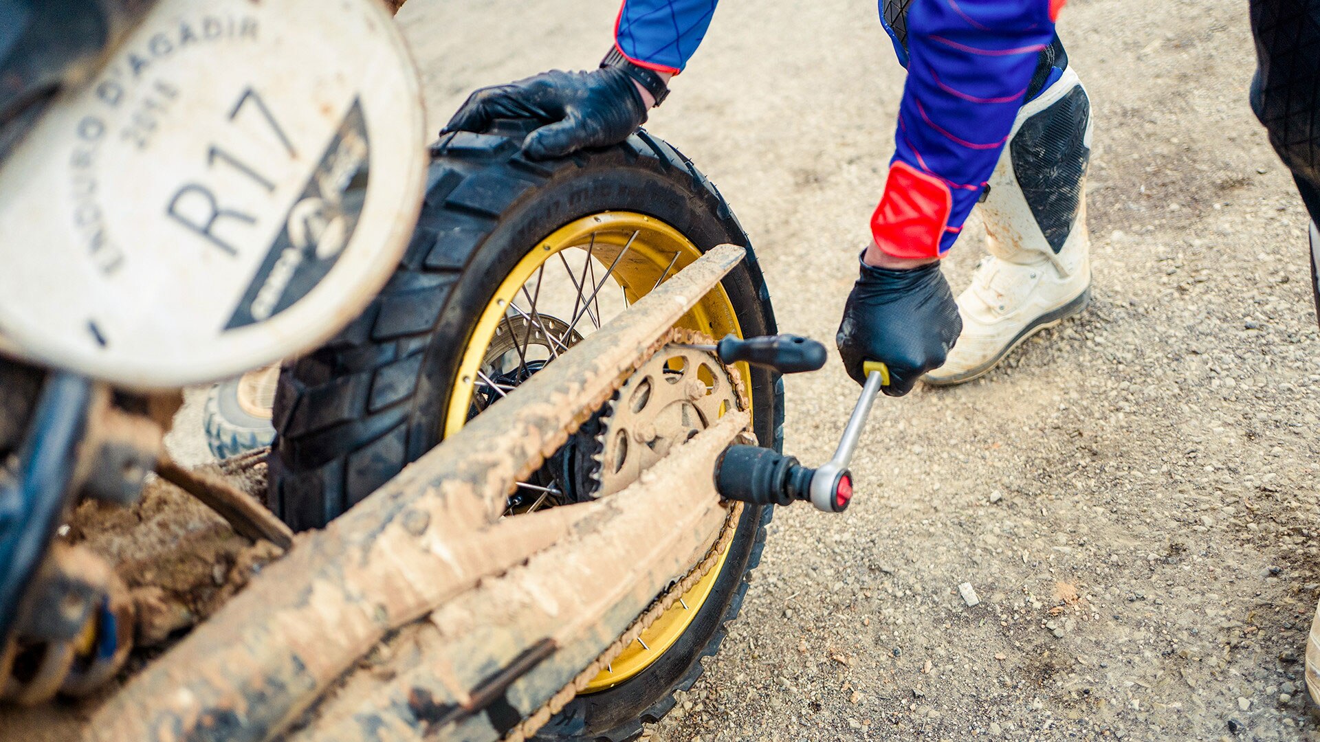 Lluvia, viento, equipo húmedo, vivac: el primer día termina de forma emocionante para Dirk. "Pero sentí escalofríos por la noche". Durante la noche, la temperatura baja a unos cinco grados y el viento hace que el frío le cale hasta los huesos. A pesar de llevar puesto un sombrero, un plumífero, un jersey, calcetines, pantalones largos y de refugiarse en su saco de dormir, todo su cuerpo se estremece. "Apreté los dientes, aguanté todo lo que pude y recé para entrar en calor. Fue una experiencia muy intensa para mí". Después de pasar la noche al aire libre, Dirk y los demás participantes de la carrera regresan a las rocas. Mientras tanto, el subsuelo se ha reblandecido. Dirk está lo suficientemente tranquilo como para zambullirse en el espeso barro. "Me acostumbré, utilicé la motocicleta adaptándome a las circunstancias o la conduje de forma tácticamente inteligente".