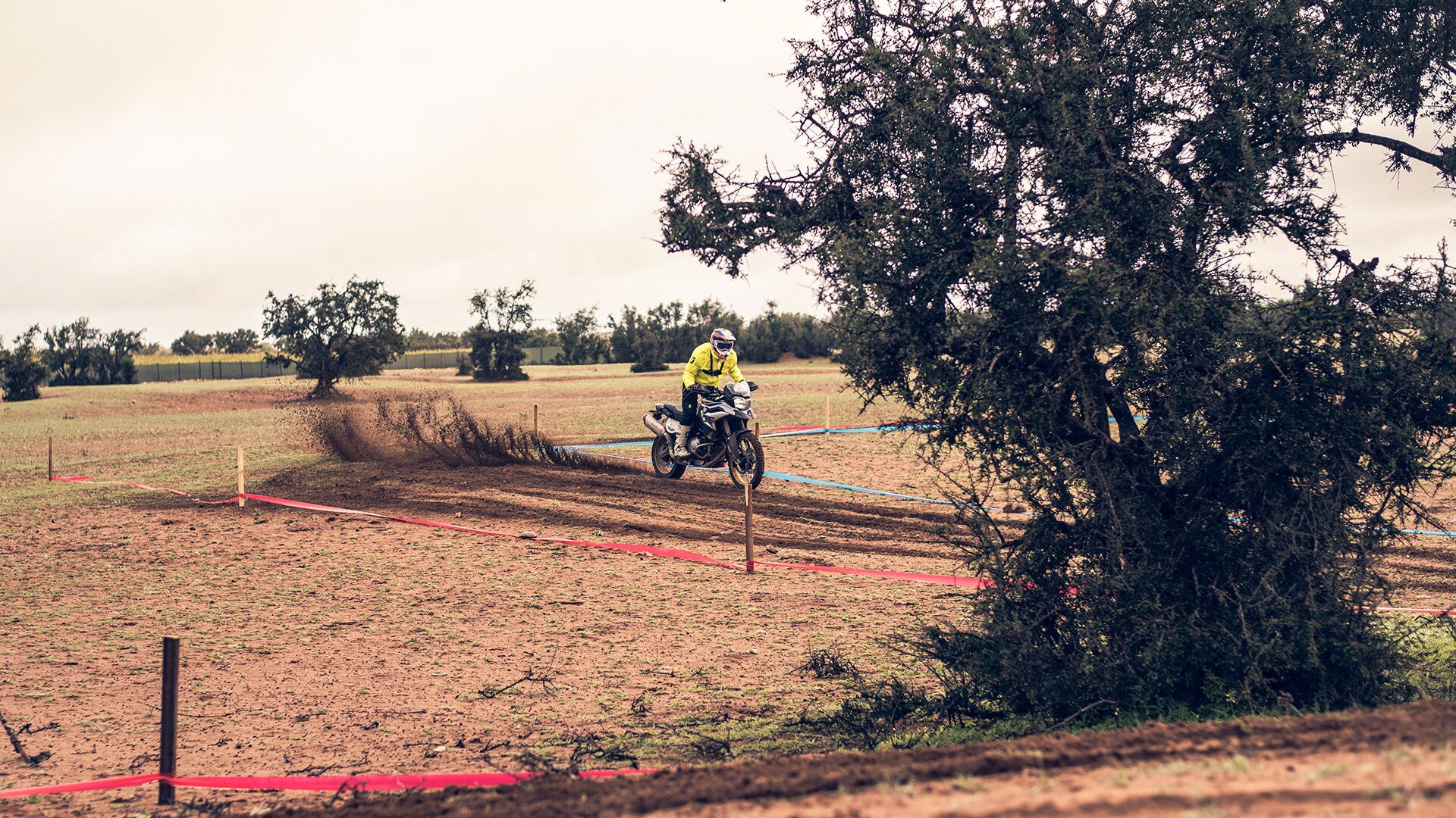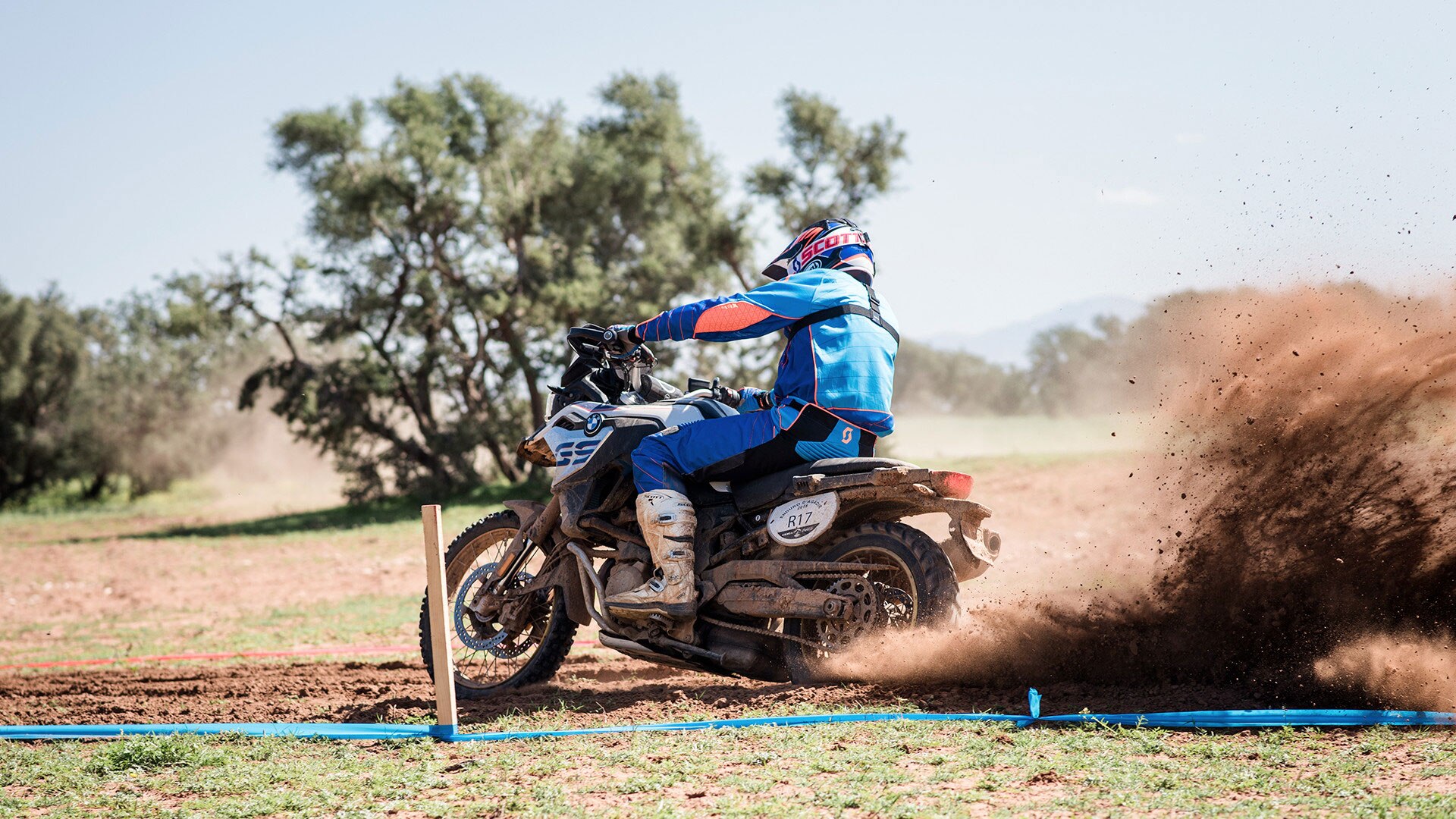 Desde el puerto marroquí de Agadir, la ruta Enduro lleva a los motoristas a Tafraout, situada al sureste, antes de dirigirse hacia el oeste en dirección a Tiznit, en la falda de la cordillera Anti-Atlas. Las etapas de los cuatro días tienen distintas longitudes, con distancias que van de 174 a 239 kilómetros. Empieza el segundo día para Dirk en Tafraout. Poco después de la salida, hay una prueba especial antes de entrar en la cordillera con numerosas escaladas rocosas. "Llego a mis límites en la prueba especial, conduciendo de forma agresiva y al mismo tiempo con cuidado, para poder sacar el máximo partido a mi máquina. Luego someto el material al estrés y la moto también tiene que sufrir. En última instancia, es una cuestión de tiempo". En las pruebas especiales de superficies arenosas, Dirk aprovecha lo mejor de la tracción de la GS. Cuando se encuentra fuera de la carretera, cambia al modo Enduro Pro. "La motocicleta es extremadamente fácil de conducir con la rueda trasera. Con independencia de la superficie, tengo la sensación de que la F 850 GS se puede guiar de forma limpia y controlada donde quiera el piloto".