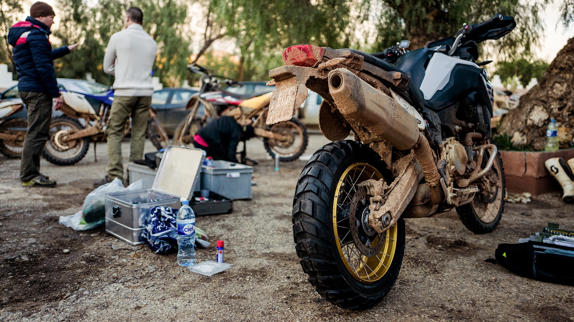 El Enduro de Agadir no es una empresa fácil por naturaleza, y la competencia también es una prueba real, porque las enduro están adaptadas a esta actividad deportiva y pesan unos 120 kilos con una potencia de entre 40 y 55 CV. En palabras de Dirk: "En comparación con esto, la BMW F 850 GS pesa casi 230 kilos y ofrece una impresionante potencia del motor de unos poderosos 95 CV. En cuanto quiero la potencia necesaria, ahí tengo una motocicleta en la que puedo confiar absolutamente". La motocicleta Adventure soporta idealmente las condiciones desfavorables.