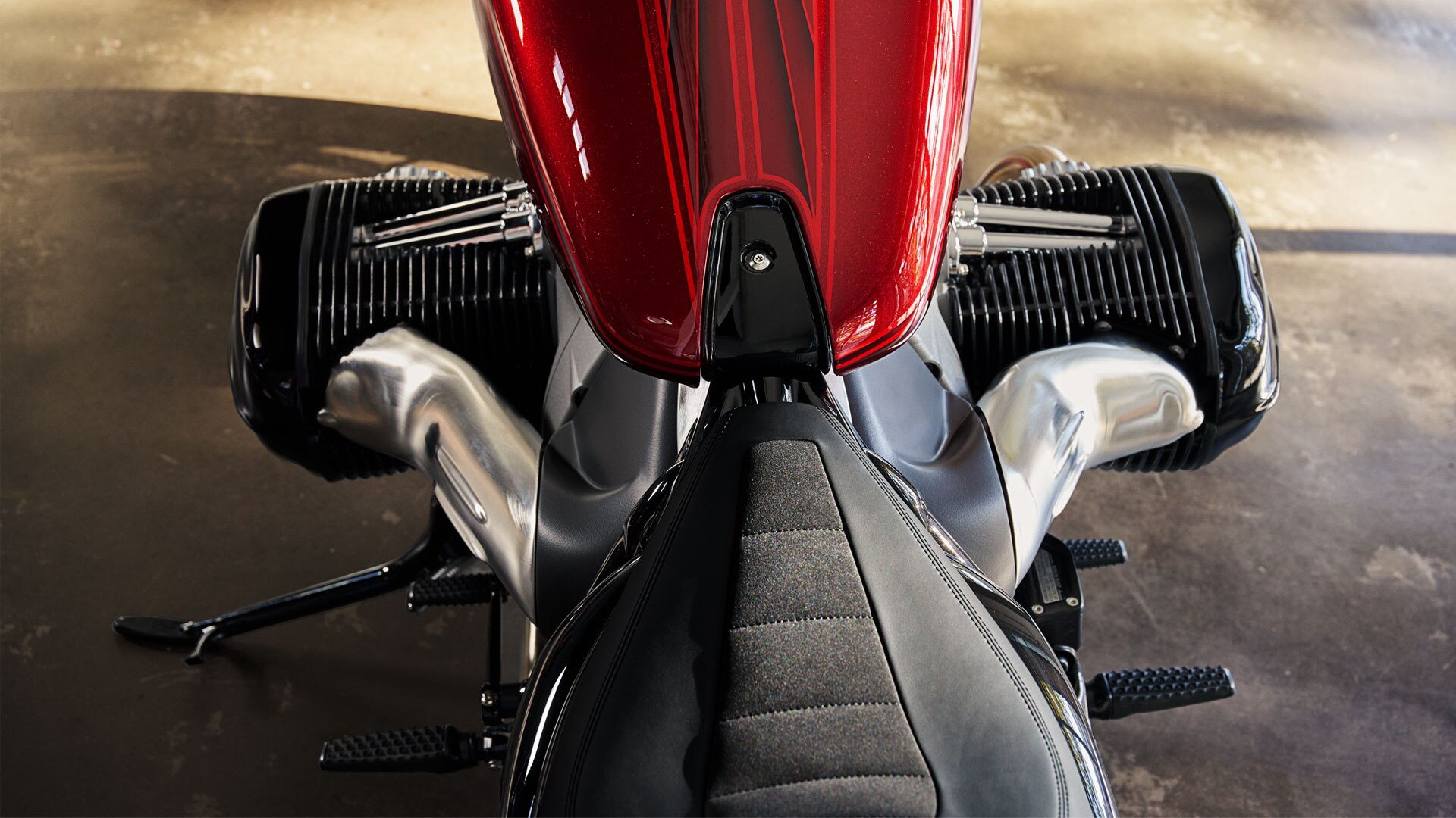 El sillín "flotante " de cuero de la Concept R 18 ya es historia y se ha sustituido por un asiento tipo chopper con capacidad para una persona y media que otorga a la moto un carácter más dinámico y deportivo. Debajo del subchasis, el guardabarros trasero se ha inclinado y se ha fijado al bastidor, dando la sensación de que abraza a la rueda trasera.